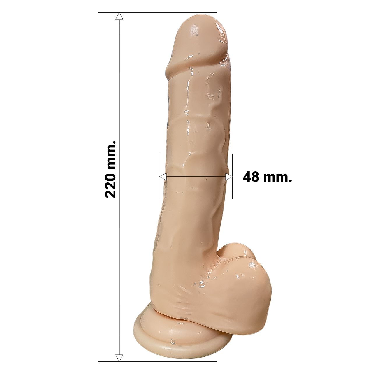 Довжина 220 мм, діаметр 48 мм. М’який, еластичний та приємний на дотик матеріал забезпечує максимально природні відчуття. Підходить для соло-насолоди та ігор у парі. Легкий у догляді, сумісний зі зволожувачами на водній основі.